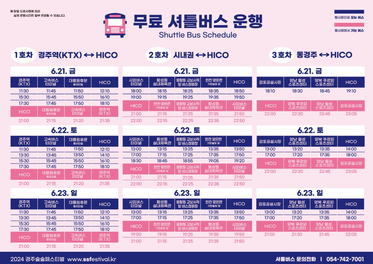 행사 당일 무료 셔틀버스를 운영하오니 자차로 이동하시는 것보다, 무료 셔틀버스를 이용하여 축제를 즐기시는 것을 추천드립니다.