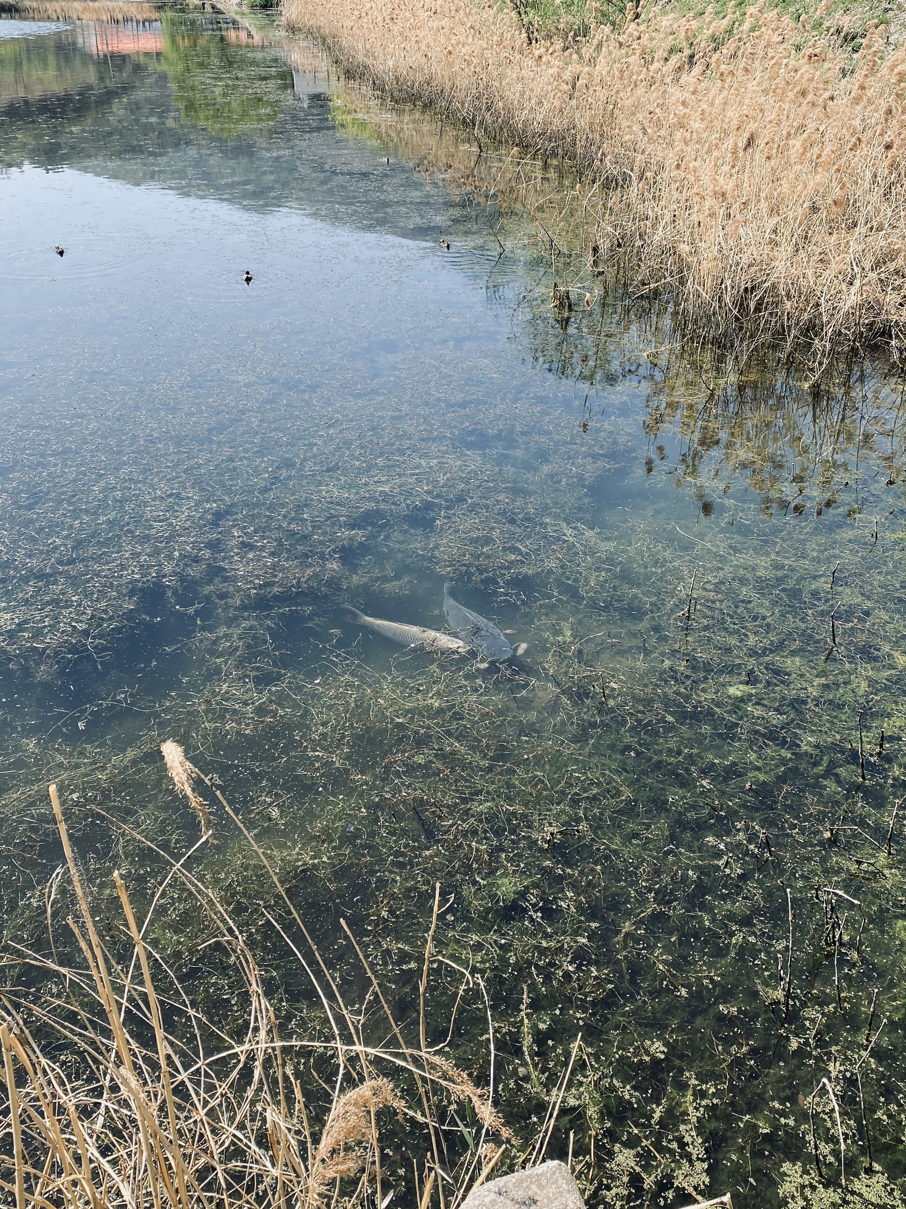 물가 근처에선 오리, 원앙들이 유유히 헤엄치고, 물속엔 큼직한 물고기들도 보였습니다.