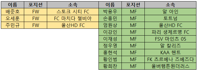이번 경기는 김도훈 임시 감독이 국가대표를 이끌게 되었습니다. 그리고 선수 명단에는 손흥민, 이강인, 황희찬 등 해외파 선수들이 포함된 만큼 축구팬 및 대한민국 국민들의 관심이 쏠릴 전망입니다.