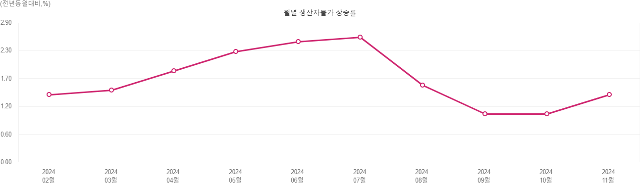 생산자물가지수는 기업들이 상품을 생산할 때 발생하는 비용의 변동을 보여주는 지표입니다. 이는 향후 소비자가격의 변동을 예측할 수 있는 선행지표로서의 역할을 합니다.