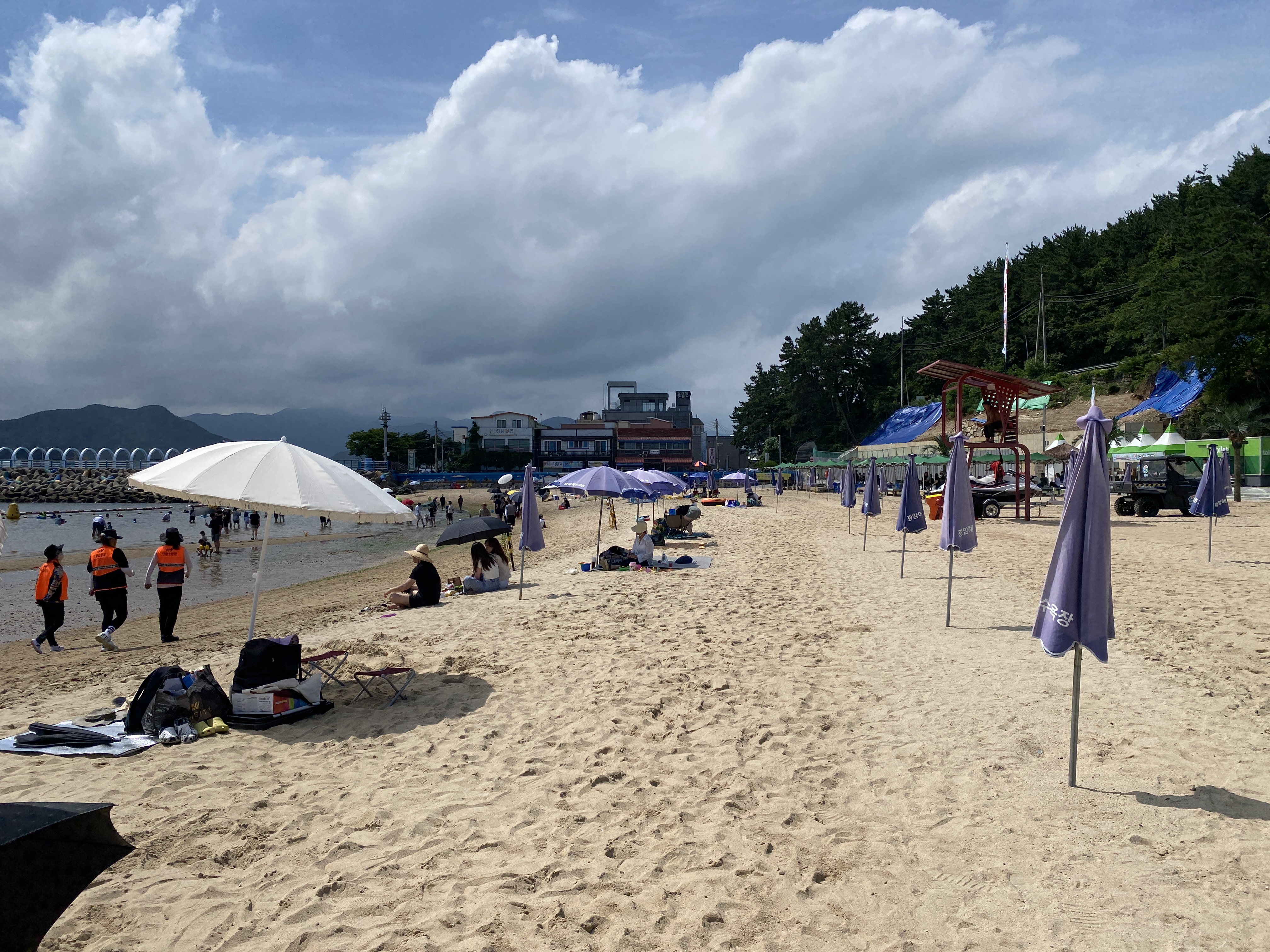 주말이지만 사람들이 많지 않아 여유롭게 물놀이를 할 수 있었습니다. 그리고 개인 파라솔 설치가 가능하며, 파라솔을 챙겨 오시지 않았다면 대여 또한 가능했습니다.