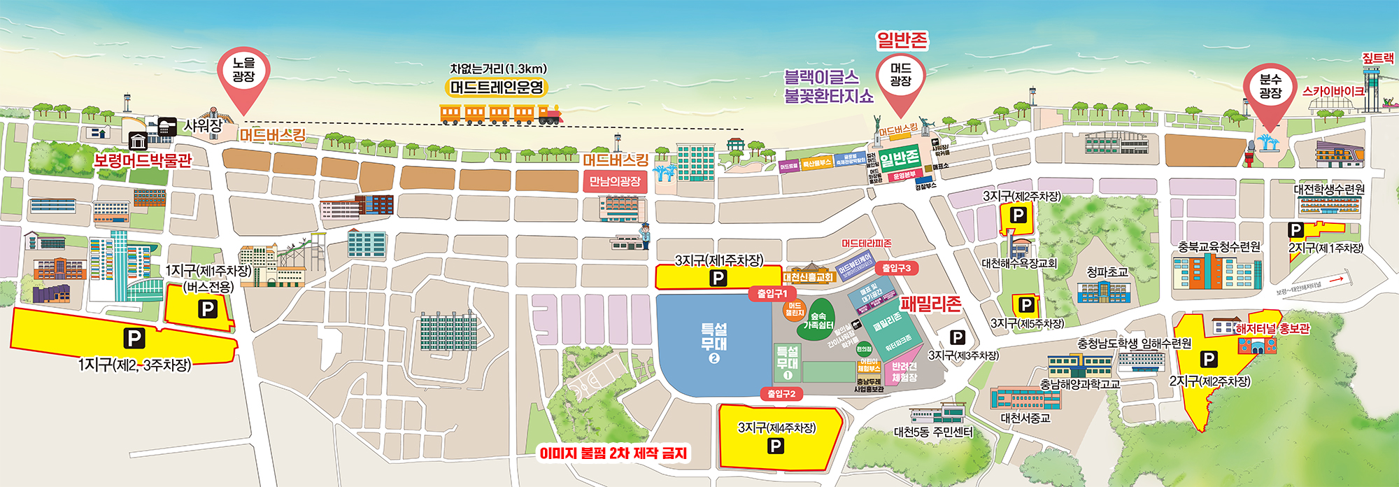 - 3 지구(제1주차장) : 충남 보령시 신흑동 2285 ~ 2286 (구 박람회장 인근)