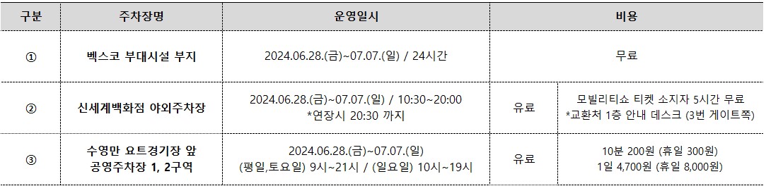 - 주소 : 부산광역시 해운대구 APEC 30, BEXCO 본관전시장, 신관 1층 전시장