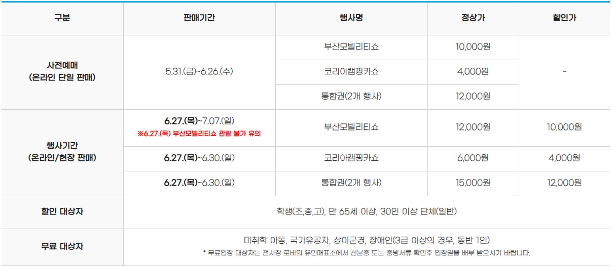 ■ 부산모빌리티쇼, 통합권 구매자는 6.27(목) 부산모빌리티쇼 관람불가