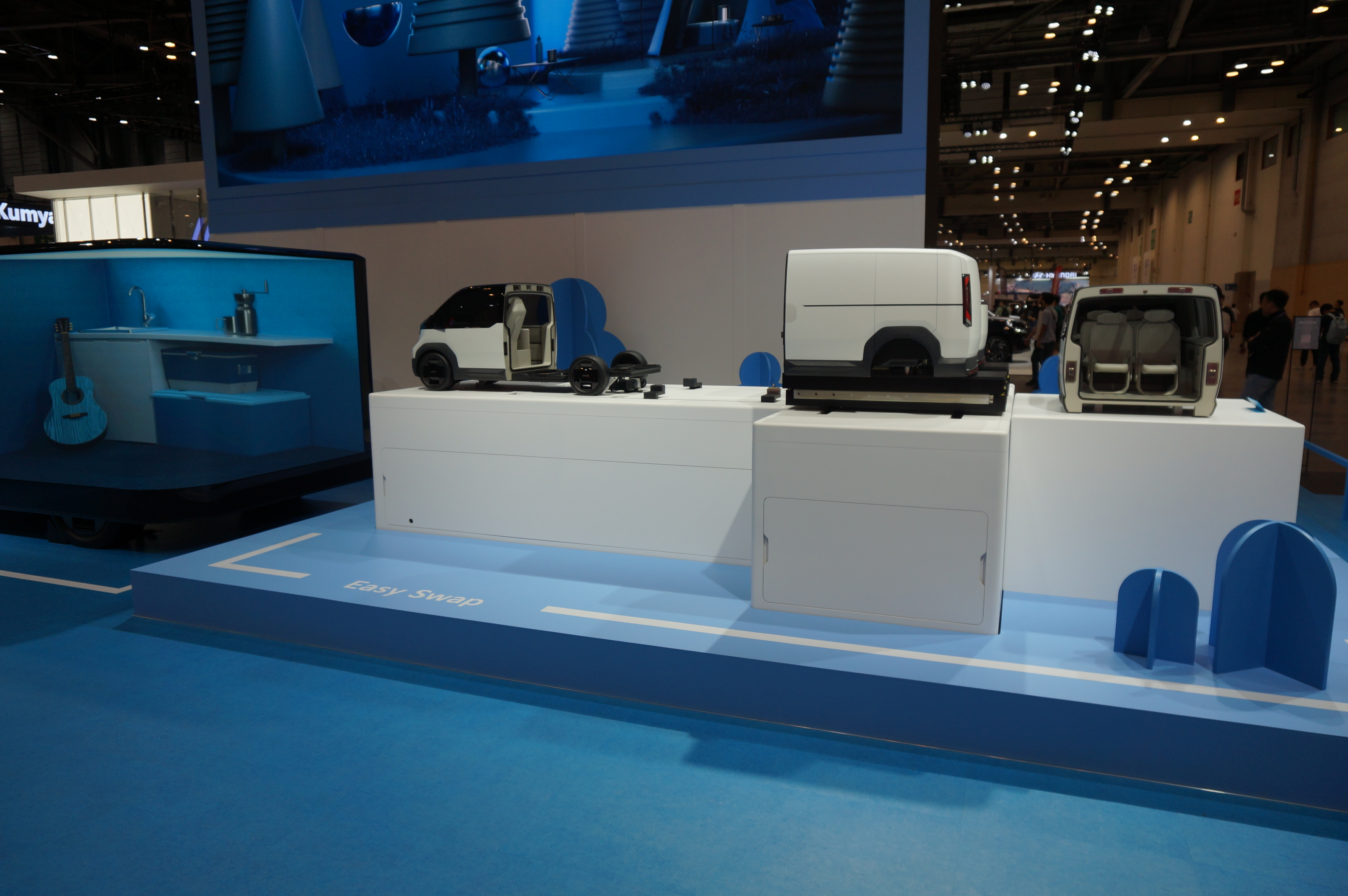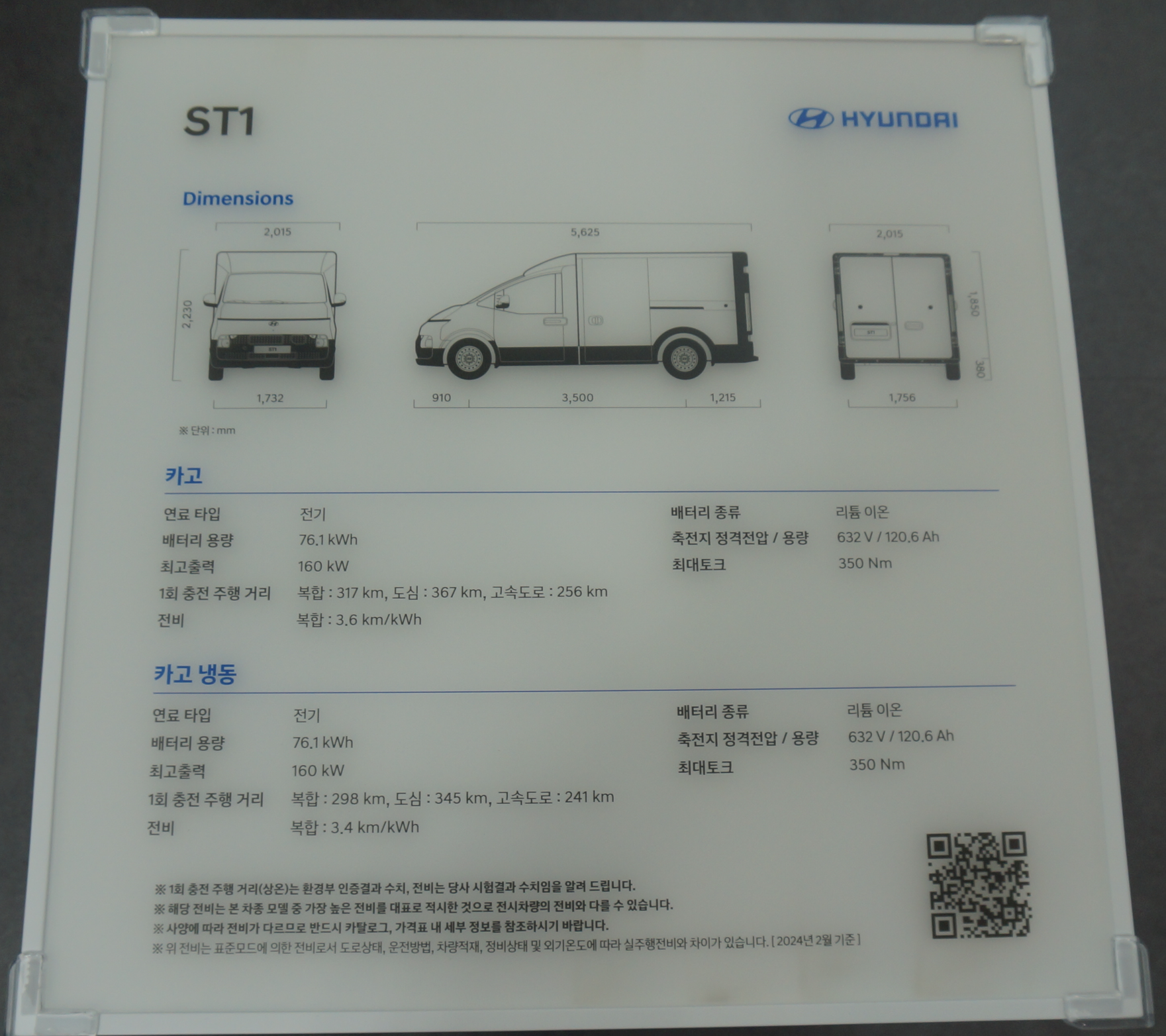 - ST1 전기 상용차입니다. 출시한 지 조금 지났지만, 이번 모빌리티쇼에서 처음 실물을 확인하였습니다. 차량은 스타리아 기반으로 만들어진 상용차이며, 뒷부분을 개조해서 다목적으로 제작된 것으로 보입니다. 차량은 카고, 냉동차로 출지 되었고 추후 앰뷸런스, 캠핑카 등 다양한 차량으로 선보일 예정입니다.