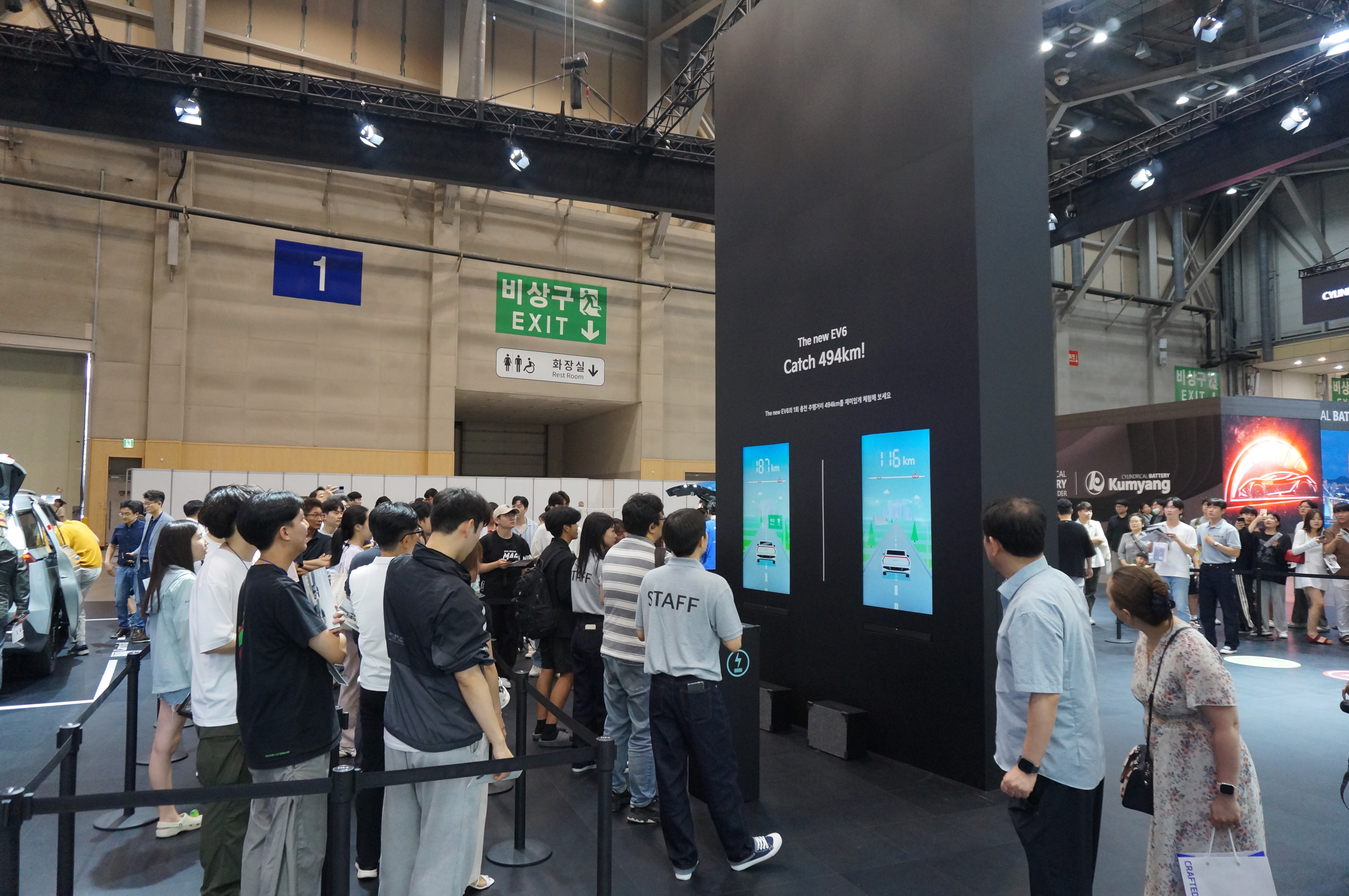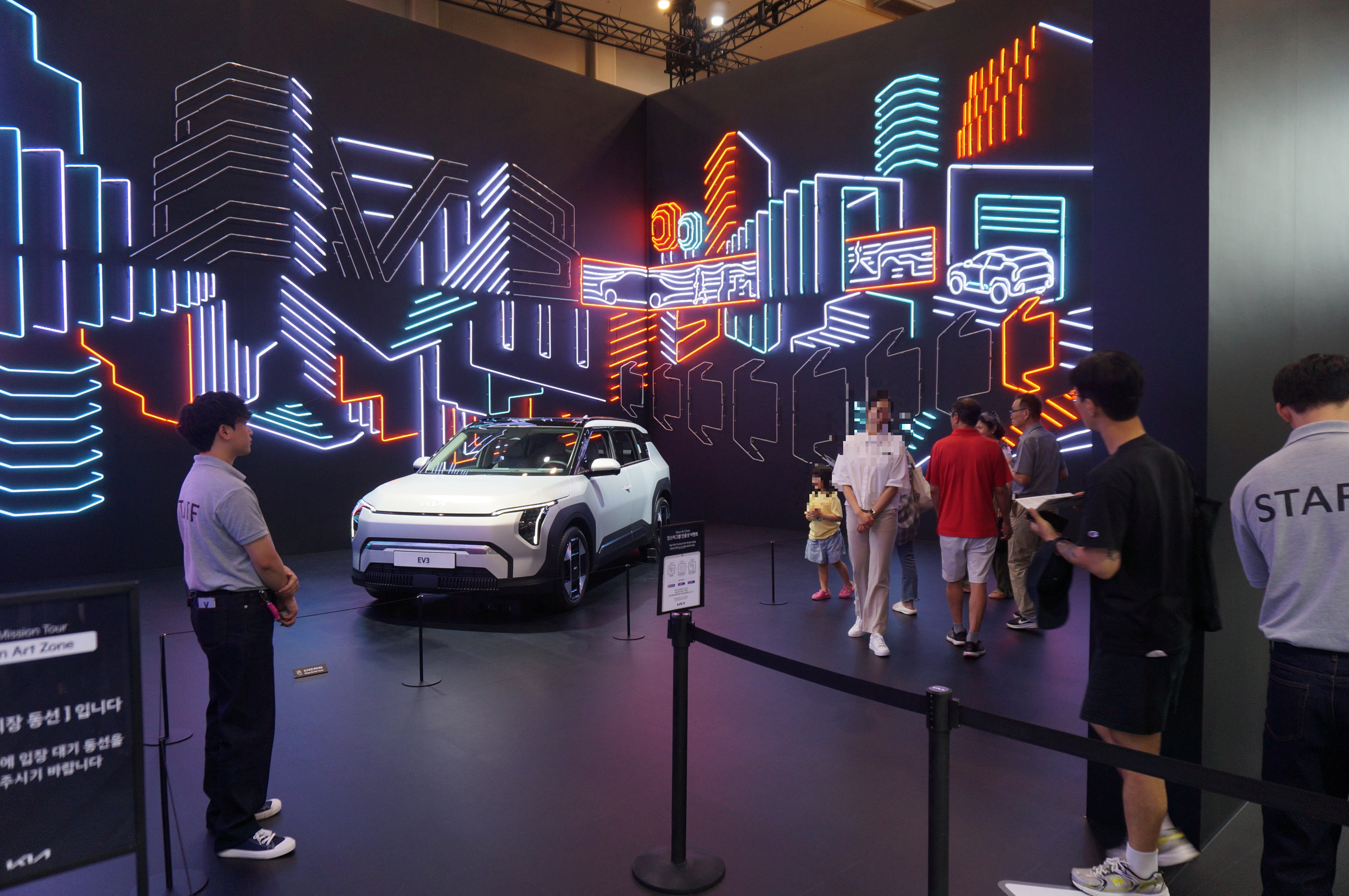 - EV3 & EV3 GT-line 국내 전기차 모델 중 최초의 콤팩트 SUV 모델입니다. SUV에 대한 관심이 높기 때문에 많은 분들이 EV3에 관심을 보였습니다. 그래서인지 별도의 전시공간을 마련하여 습니다.
