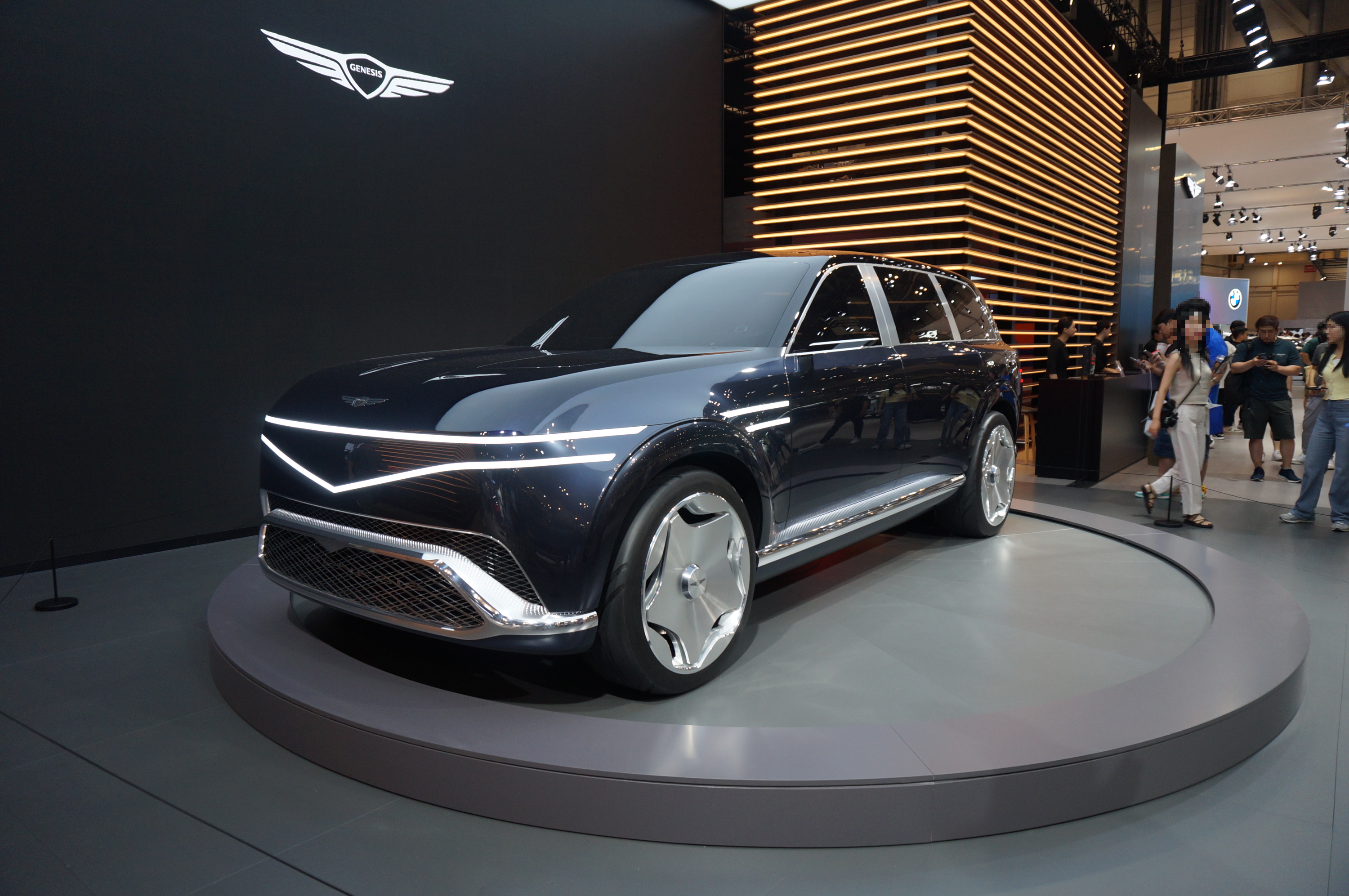 올 3월 뉴욕에서 첫 공개한 제네시스 플래그십 전기차 네오룬 콘셉트입니다. 둥글둥글한 곡선이 특징적이었습니다.